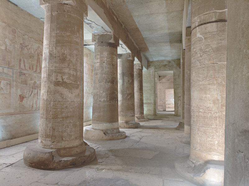 Historische Bedeutung: Der Tempel wurde während der Herrschaft von Seti I. im 13. Jahrhundert v. Chr. erbaut und ist dem Gott Osiris gewidmet, der mit dem Jenseits und der Wiedergeburt in Verbindung gebracht wird.